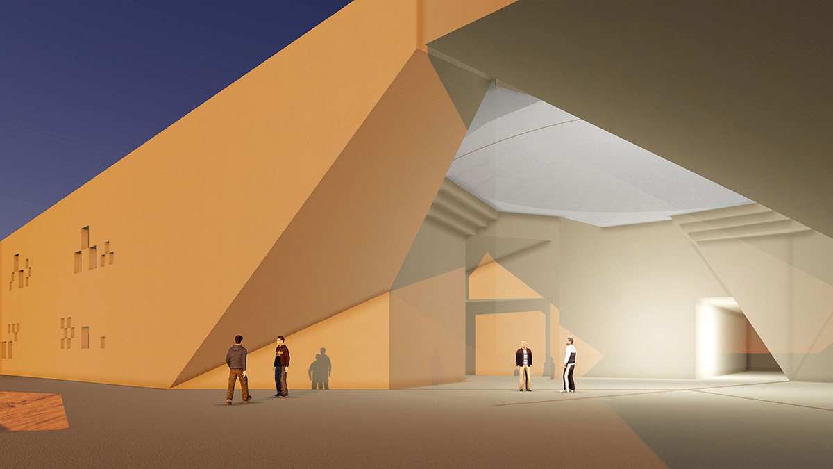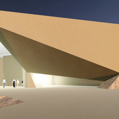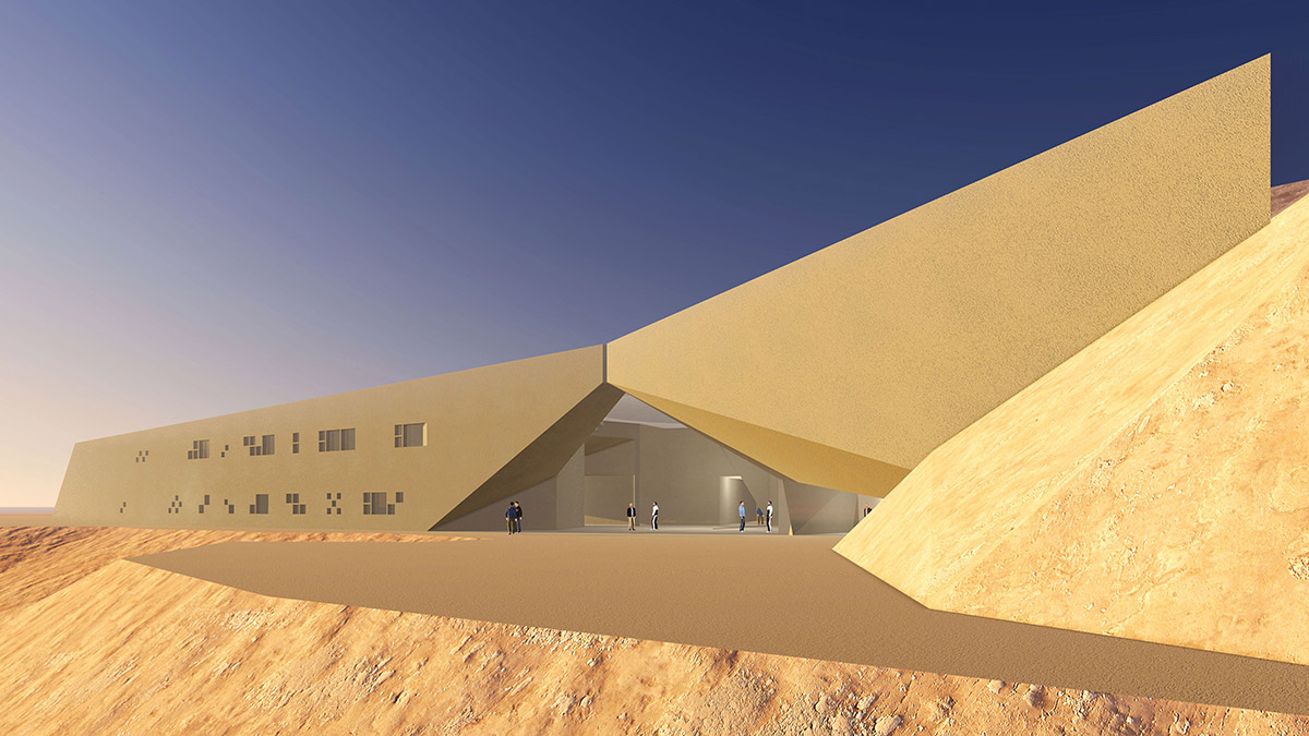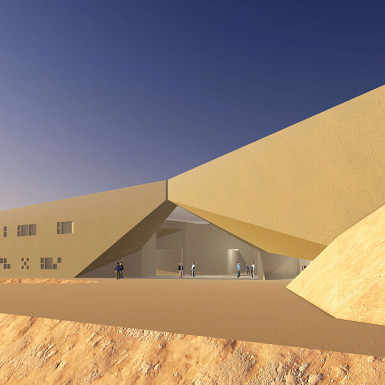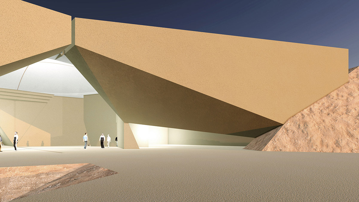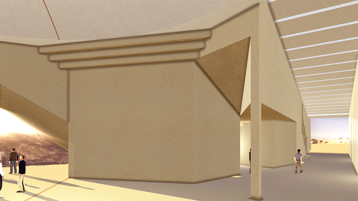 The Iwan and the Dome are the key notes that structure the geometric composition of the Bamiyan Cultural Centre. The Dome, modern in design but traditional in its genetics, covers the main exhibition space, linking the various public functions. Its profile is extruded to form the Iwan, extending the space towards the Buddha Cliff, embracing it with its panoramic aperture, thus becoming the key feature of the architecture in screening the internal, external, Buddha Cliff relationships.