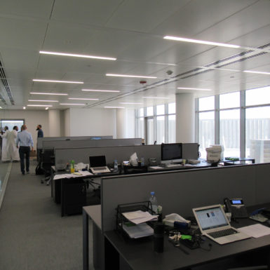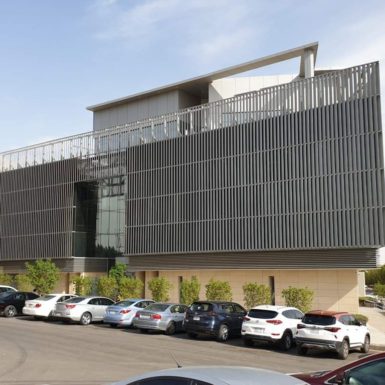 The MIDIS KSA Headquarters stand proud on one of the main roads in Riyadh. Housing over 4,000 m2 of offices on 4 floors, the buildings’ strategically placed louvers minimize direct sun exposure while allowing natural light in the offices. A completely modular system of partitions, along with raised floors make this office fully customizable. 3 Elevators serve efficiently the different companies, while welcoming the visitors to a central garden.