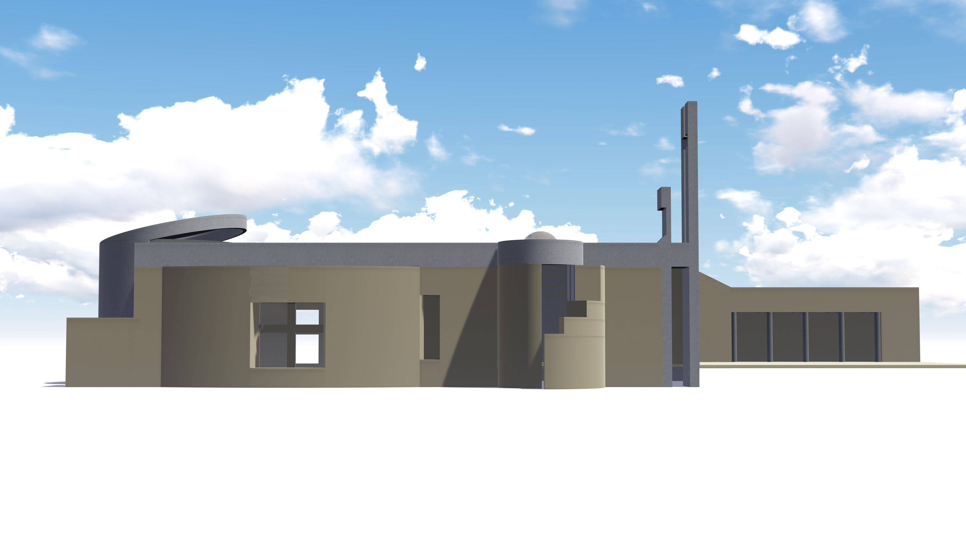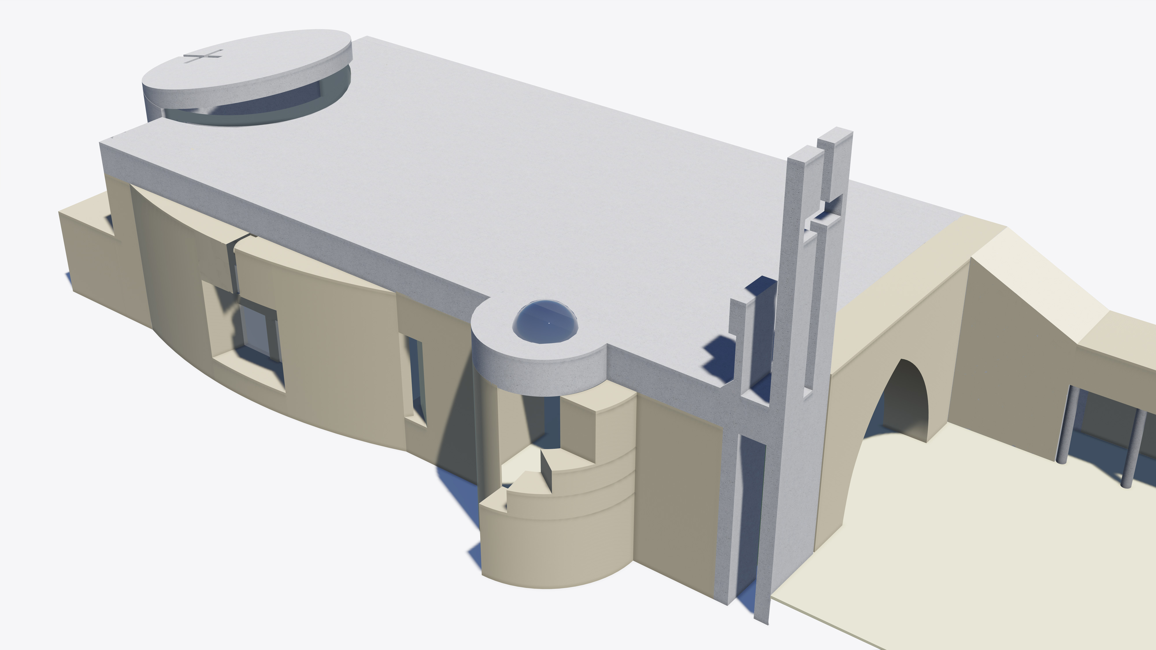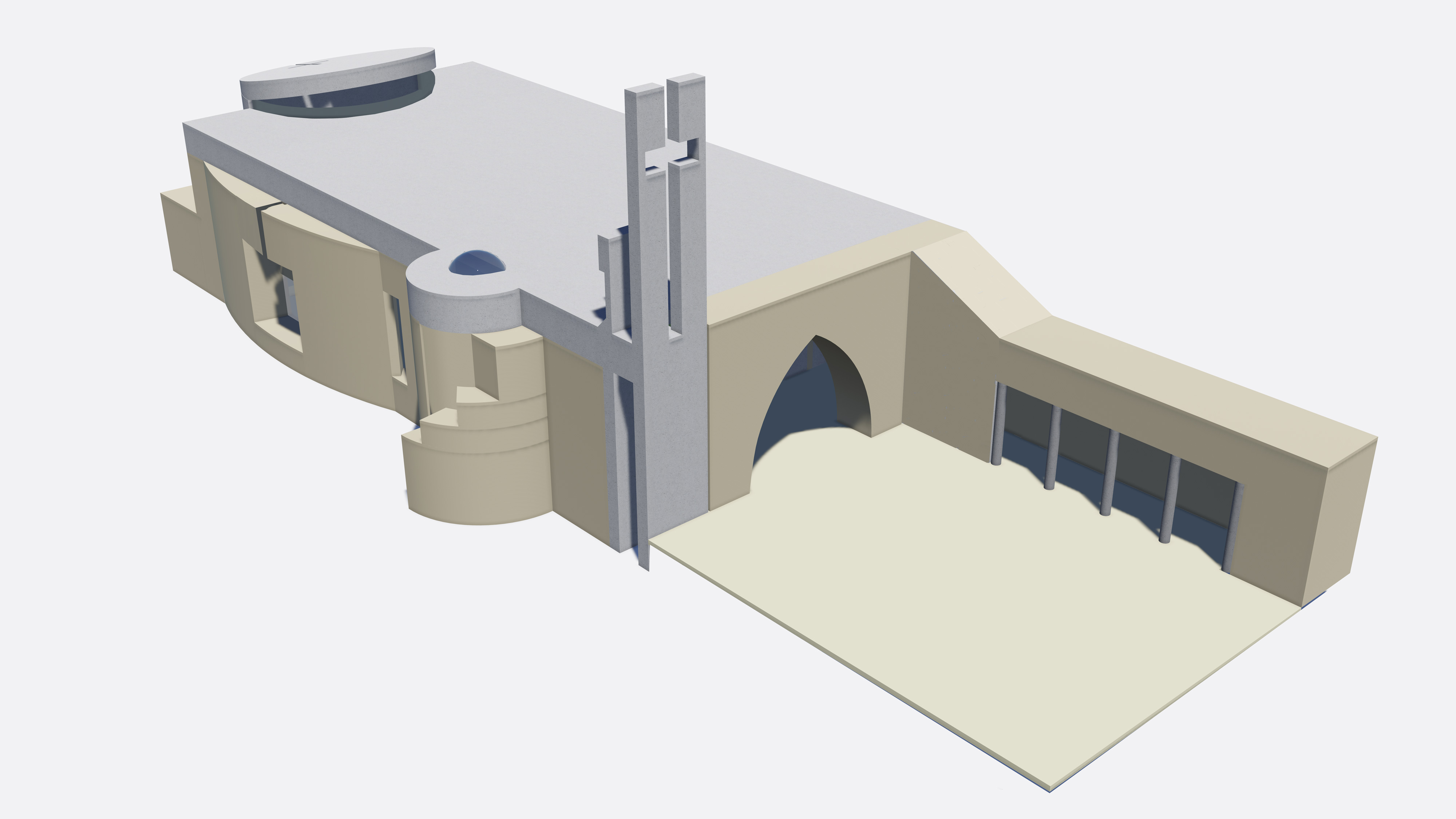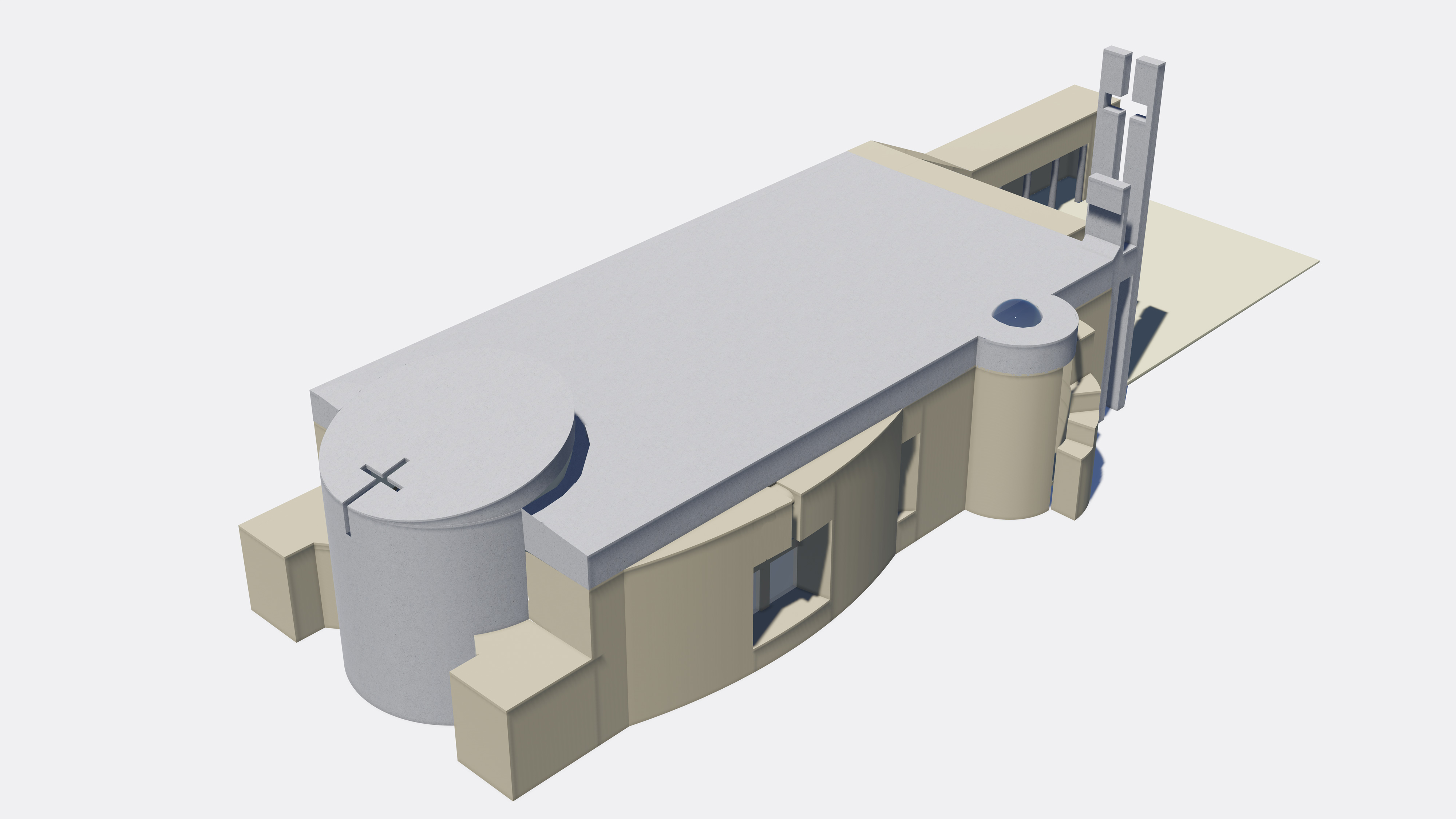The design was conceived as to recapitulate the characteristics of these churches, as massive and vaulted plain rectangles with a dimmed lit interior in favor of piety. The Maronite church typologies were restrained to the apse, to the modest bell tower, and sometimes to a nartex.