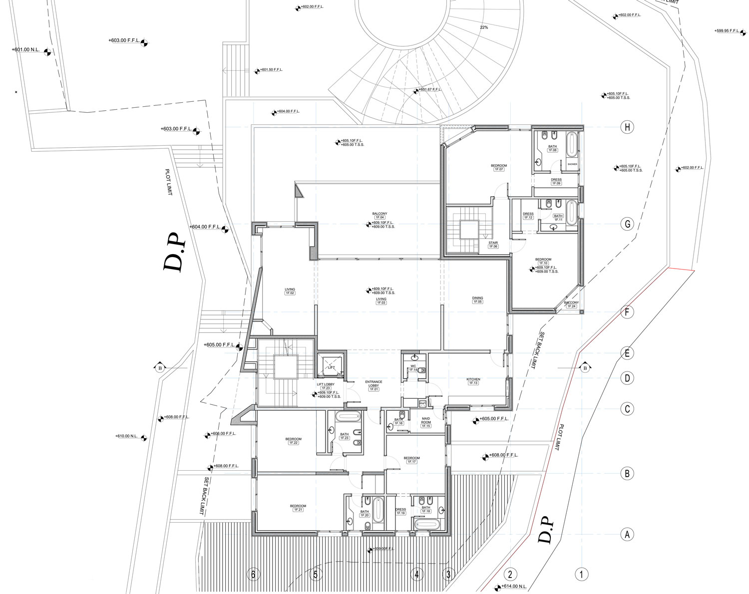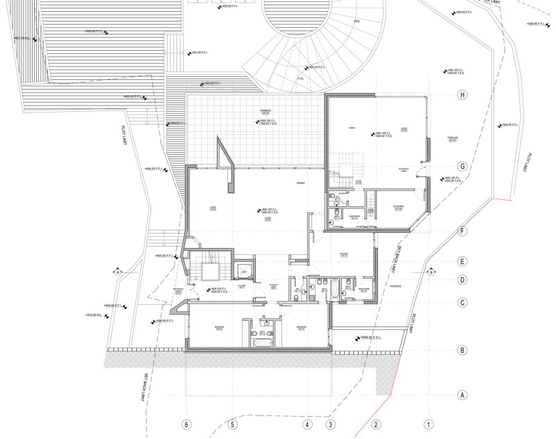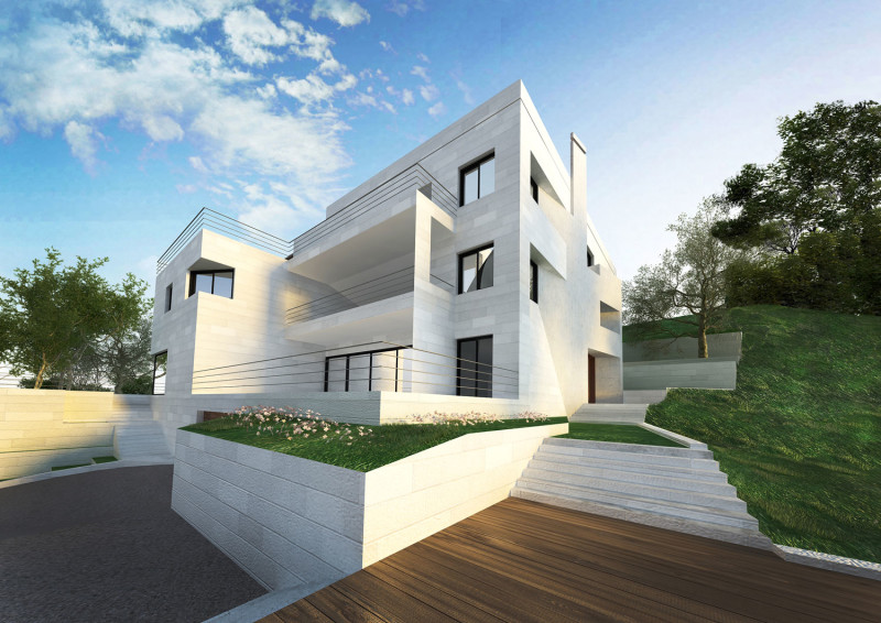 A 2000sqm family building that consists of four apartments, each one personalized by its own aspect and function. The global unity is a semantic expression of solidarity. The building is located in a natural and landscaped setting where different entities are conceived in an organic relationship with nature.